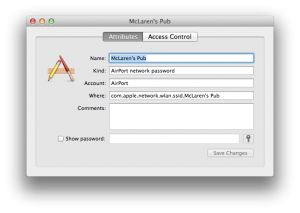 It’s easy to forget your wifi passwords. This in turn makes it very difficult to tell them to friends when they ask. So here’s a quick guide to looking up what your wifi passwords are in Mac Lion / Mountain Lion. (In earlier versions, it was super easy).